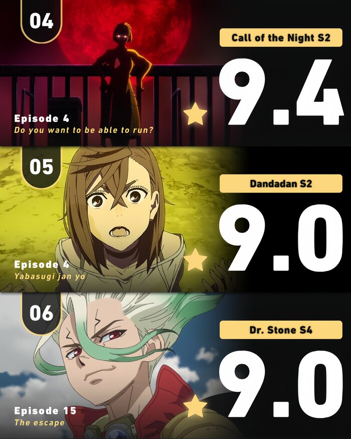И завершаю я подборку этим аниме-сериалом, который считаю epic epic epic win летнего сезона. Да "Дандадан 2" только начался но уже порадовал вполне отличной графикой, красивыми персонаждами (Момо Аясэ как похорошела ммм) и конечно же х2 безумием. Ведь у нас тут инопланетяне, нежить, магия, экстрасенсы и многое другое. Первые серии чего стоят, и уже после просмотра я жду не дождусь остальных. Да и рейтинг аниме-сериала держится на высоком уровне: 8,48 из 10. В общем рекомендую, его все хвалят!