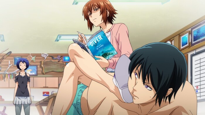 Начать нужно с того, что аниме действительно имеет много особенностей. Заявлено как аниме о дайвинге, оно просто ломает мозг своими "фишками". Тут вам всё: показ голых тел, пьянка, небольшая любовная линия, приколы и издевательства.