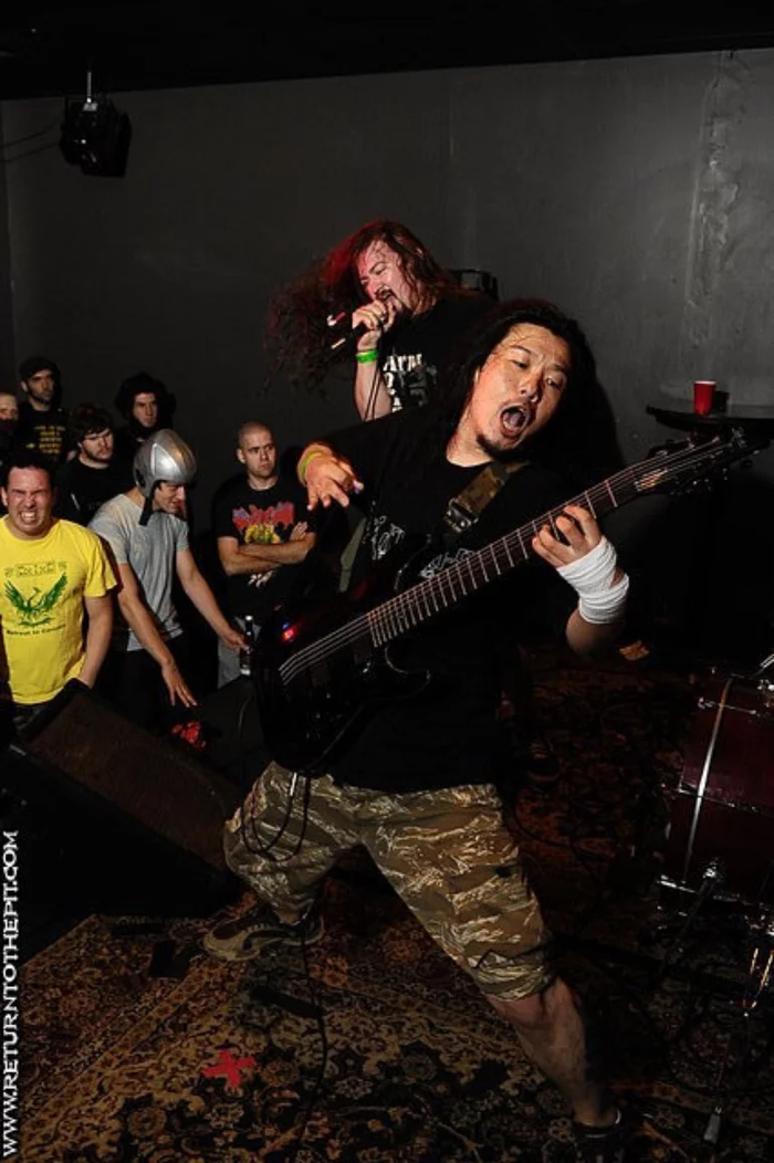 Хотелось бы что-то посоветовать. Например, трэк «Ритуал Агонии и Самозабвения», это 4-минутная композиция, отличающаяся кроме фирменной бронебойности, также и тягой к смертельной медитации, и потому осмыслению каких-то базовых вещей. Так получилось, что вокал здесь весьма вплавлен в базальт трэка, и не знаю, хорошо это или плохо. В этом элементе неопределенности есть свой кайф, ибо нет настолько определенной и незыблемой вещи в металле как Grindcore. Тут сваезабивочная машина встречается с философией индийского йога, которая поддержана смутной то ли мелодией, то ли отработкой на гитаре, вложенной на самый низ асфальтополотна.