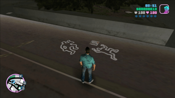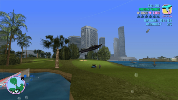 А теперь немного про город. По ощущениям он больше Либерти-сити. Также поделен на 2 острова. Ориентиров много и со временем ты ориентируешься в Вайс-сити как в своем дворе даже без карты. Компактность — это хорошо. Но слишком быстро становится тесновато в этих рамках. Странно что в тройке у меня такого ощущения не возникало. Активностей в городе немного. Собрать коллекционные ништяки, задания по телефону, работа полицией, такси и курьером. В этом плане он остался на уровне третьей части.