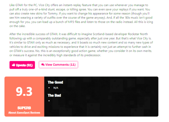 Игровая пресса отмечала выросший масштаб города и звездный актёрский состав. Также хвалили сюжет и постановку. Но были и упреки что это просто расширение для GTA 3 или DLC. Знакомо неправда ли?