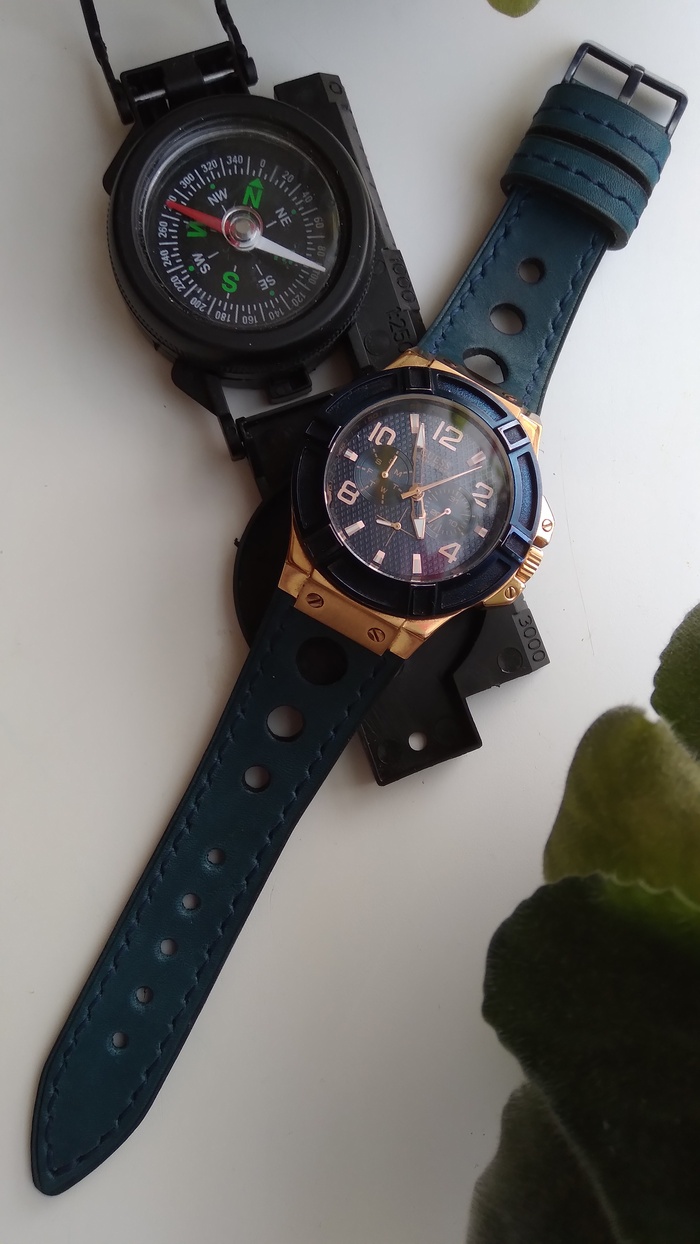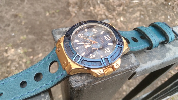 Ремешок напульсник для мужских часов Guess с интересным циферблатом. Ремешок полностью в чёрном цвете по желанию владельца часов. Почти как родной.