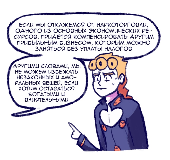 * Одним из жестких противников являлся некий хмырь-наркобарон, ищущий розоволосую девку и имеющий клевые тату (Ходи и Дьяволо)