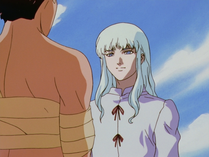 Это был бы ранний Геральт из Ривии, если бы не одно но: Гриффит мерзкий и умеет создавать нежить. В остальном же это умный стратег, который решил что может стать "богом" захватив королевство. Однако столкнувшись с проблемами и мятежом против себя, решает использовать Гатса и его людей, чтобы не погибнуть. К нему двоякое отношение: с одной стороны он кумир, к которому нужно стремиться, а с другой - тёмная личность, которую не пожелаешь и врагу.