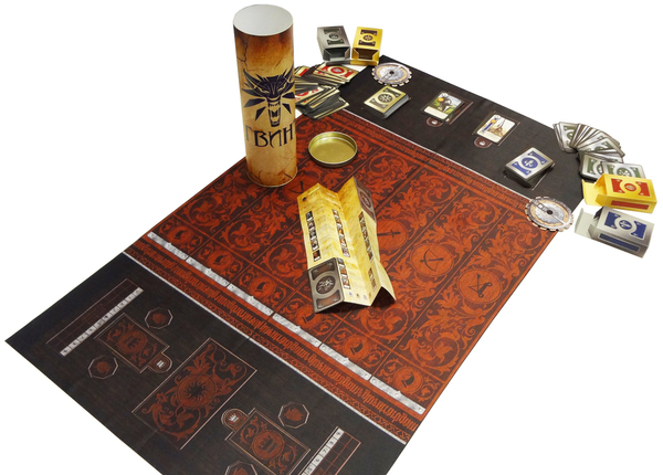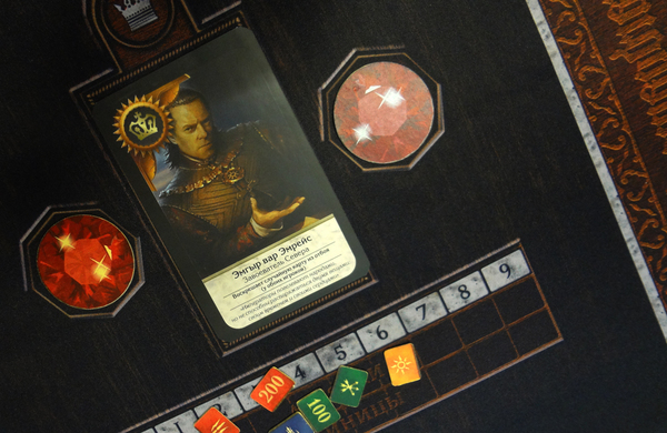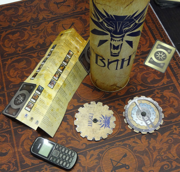 Набор фишек и 2 счетчика (можно фишками пользоваться, а можно счетчиком), игровое поле - ткань, карт, почти как дней в году - 354. Есть карты из Каменных Сердец, а также в каждой колоде на выбор есть 2 дизайна некоторых карт (ну как в DLC Герои Баллад), правила - сделаны как Z-card, маленькие удобные.