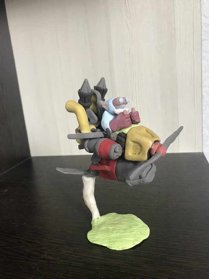 В продолжение поста https://pikabu.ru/story/moy_mladshiy_brat_lepit_iz_plastilin.... Накупил ему полимерки. Лепил много, вот опять слепил персонажа из Dota 2. Получился забавный, поделюсь с вами. ( на подходе еще bristleback, но тот должен быть серьезнее и детальнее). Как мне сказал брат, просто забавный вышел вертолет.