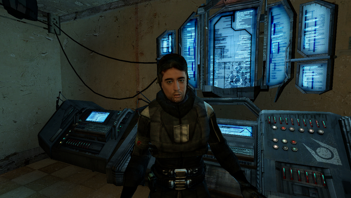В общем-то он фактически и запускает всю сюжетную ветку, благодаря чему и начинается восстание. Он первым замечает Гордона Фримена, помогает ему сбежать и даёт монтировку. Без монтировки Гордон некоторые преграды и самых первых противников одолеть не способен. То есть, проморгай Барни Фримена, попросту не узнав или будучи не на посту, то всё. Хотя существует большая доля вероятности, что это всё спланировал G-Man, но тем не менее. Странность тут в том, что как Калхаун объяснил тот факт, что вот только он вёл неизвестного на допрос, а тот потом куда-то исчез? Напоминаю, что Барни работает двойным агентом. Работая на ГО, но тем не менее помогая сопротивлению и бежать людям из города. Естественно не принимая никакого участия в пытках и избиениях, на которые даже есть чёткий план, составленный руководством. ГО - это военная полиция, обычные люди, которые согласились работать на Альянс, то есть поддерживать порядок избиениями и страхом. В обмен на более высокое качество жизни, по сравнению с рядовыми гражданами. Как зондеркоманды в лагерях смерти. Кстати, очень часто именно такие самые опасные, так как что бы спасти себя, пытаются всячески выслужиться и готовы идти на любые зверства. Конечно в игре об этом ничего не говорилось, насколько я помню. Но в жестокой, тоталитарной системе не может не существовать системы доносов. А тут полицай, норму не выполняет, задержанные из его кабинета исчезают, куда-то всё время отлучается, к Кляйнеру, например. Странно? Ну как бы да. Тем более, что Гордон уже засветился на всех камерах, наверняка же там существовала система записи и повтора. Только что его Барни уводит на допрос, а час спустя тот уже скачет по крышам, водоканалам, железным путям, оставляя за собой горы трупов. К Калхауну никаких вопросов нет и никто его не подозревает. Он оставив Фримена в лаборатории, спокойно возвращается на работу и будет жив-здоров, до самого восстания и после тоже. А Альянс очень неприятно наказывает за куда меньшие проступки или подозрения. Даже просто ради того, что бы другим было не повадно. Можно предположить, что возможно Калхаун имел высокое звание и смог объяснить бегство Фримена. Мол, напал неожиданно, дал стулом по голове и был таков. Фримен всё таки. Я лично только так это могу объяснить, но зачем тогда было за ним дверь запирать? Либо же в ход событий вмешался G-Man, спутав карты и тем самым дав фору обоим. Меня этот момент ещё в детстве смущал. Тем более что Брин видел Гордона, при его неудачной телепортации и наверняка бы попросил запись с дронов и камер видеонаблюдения. Откуда же он взялся, чего хочет и куда направляется? В общем тут скорее всего сюжетная дыра, да ещё и в самом начале. Но справедливости ради, их будет не так много за всю игру..