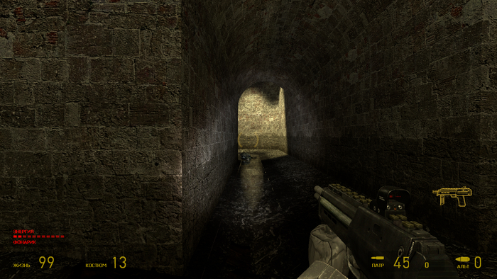 В двойке стволы поинтереснее,но жалко что их маловато, и просто задолбали их пиксельные модели, одна импульсная винтовка мне симпатична, выстрелы из нее ощущаются очень тяжёлыми. Пистолет USP и MР7 с коллиматором все ещё радуют сердце,но не глаз. Гранатомёт просто вырвиглазен - какое то ведро с лазерной указкой,приклеенной черной изолентой внизу. Дробовик прикольный,но его вид от первого лица слишком худой . Гранаты очень интересные, и совсем не правдоподобные, за ними тянется красный не то дым,не то пламя,чтобы враг быстрей заметил. Ферапод -очень интересная концепция, грави пушка-нереально крутая!!! Попробуйте хоть раз пройти Рейвенхольм с гравипушкой на харде! Я даже удивился,что все так быстро кончилось! Не хватает анимаций прицеливания и бездействия. Арбалет крут сам по себе,особенно ачивка с ним"Говорящая реклама". В БМ опять повторили ошибку- пистолет пулемет МР5 не эксплуатабелен. Слишком огромный разброс,и падение ФПС с задержкой звуков выстрелов. Модельки красиво все отражают. Шутган почти с бесконечными патронами,но он идеален. В оригинале патронов было носить можно дофига. А теперь урезали,и появляется их ценность. Глок 9*19 довольно брутален. Фомка она в любой части фомка. Снарки круты,смешно пищат. Мины растяжки,взрывпакеты, гранаты очень нужны при игре на харде. Помогают спастись от тупых,но злых врагов. Арбалет суперский. Гаусс и пылесос офигенны в устранении врагов. Пчеломет не сильно эффективен,так что я обычно взрывал зомби,это классно. А ещё гранатомёт похож на гранатомет. Наверное все гранатомёты из двойки были сделаны кустарно в подполье.