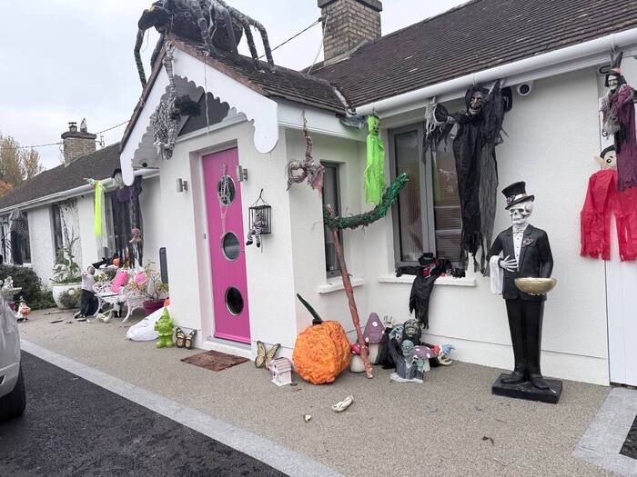 Одна из лучших современных традиций — украшение домов и дворов "страшной" тематикой. Причем в Ирландии заморачиваются даже жители квартир — кто делает отпечатки красной краской детских рук на стеклах балкона, кто ставит «привидение». Многие магазины тоже тематично оформляют витрины.