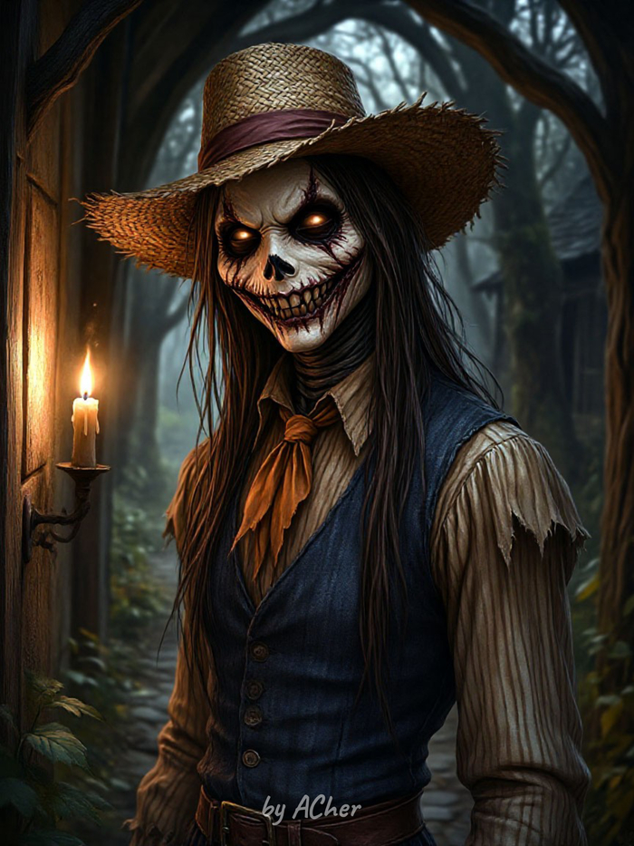 Добавление стилистических указаний резко повышает качество фото в стиле хеллоуин: