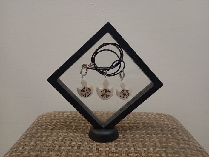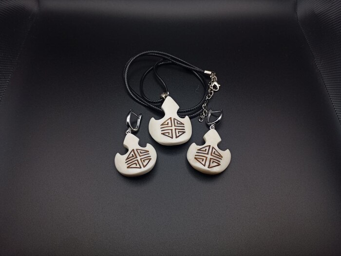 Набор украшений «Тажуур» традиционно я его делаю из отбеленной кости марала (дикого благородного оленя). При производстве используются такие техники как резьба и гравировка по кости, а также тонировка.