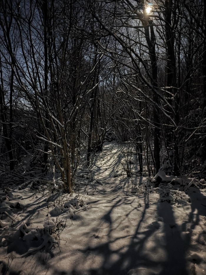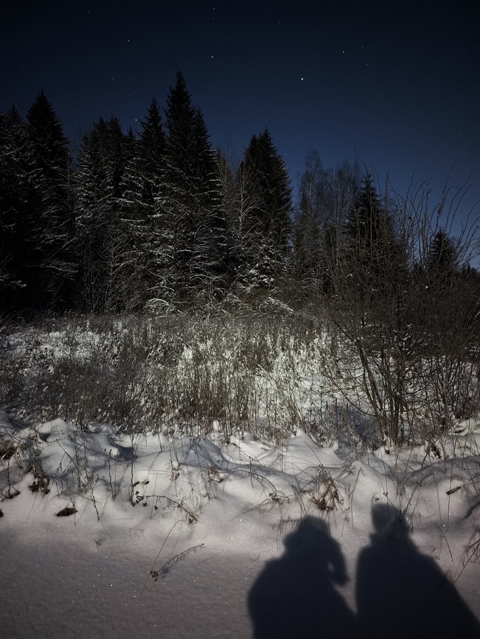В небесной канцелярии нас похоже услышали, и вот мы после всей предновогодней суеты, уставшие, но счастливые и довольные, плотно наевшись салатиков, прямо в четвертом часу наступившего года пошли смотреть на то, о чем так мечтали. Логичным был бы вопрос: «А чего вы там пошли смотреть в ночи?». Если бы не долгожданный снег и полнолуние.