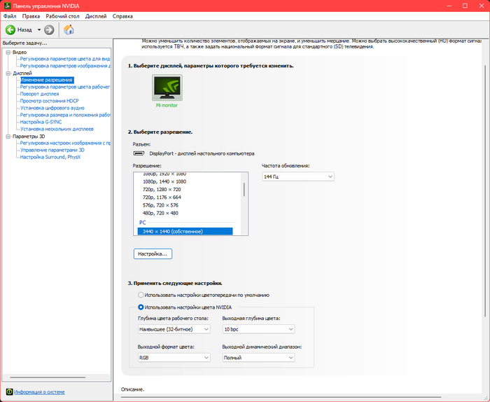 В настройках ОС и монитора включена функция, включена разрядность 10 бит.