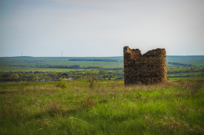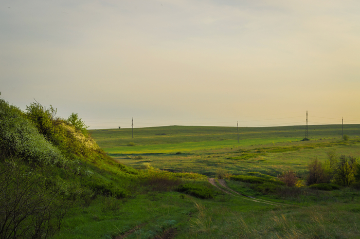 В итоге получилось так, что дорогу перегородили и она совсем заросла травой. Колёсная колея угадывалась, проехать было можно, но справа и слева только заросли. Зато по дороге наткнулись на стоянку техники, ремонтировавшей дорогу неподалеку.