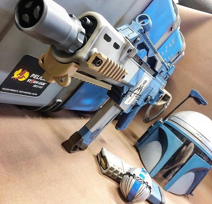 Подумываю над заказом у него вот такой непрактичной, но распознаваемой фанатами ЗВ раскраски своих стволов. Фото ниже. Что думаете?