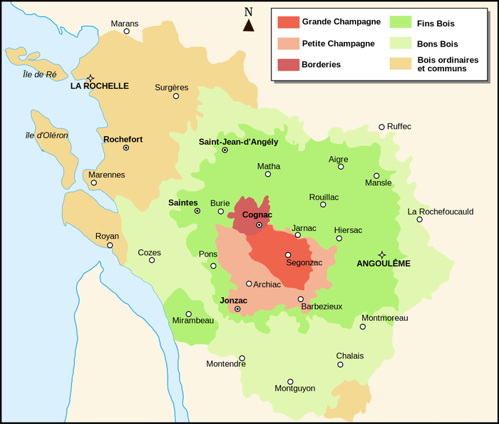 Вид виноградного бренди получил название от французской местности Cognac в регионе Шаранта. Коньяк производится из особых сортов винограда по специальной технологии с перегонными кубами. Понятие "коньяк" в ЕС защищено.