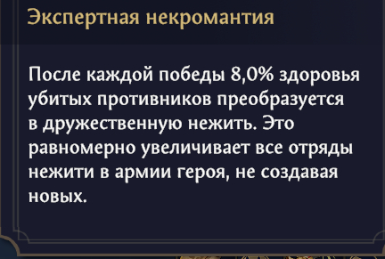 Ну, а некроманты по традиции продолжают использовать некромантию, поднимая процент убитых существ после каждого боя и пополняя все имеющиеся стеки нежити (а не только скелетов). Количество поднятых существ зависит от их суммарного запаса здоровья, поэтому не надо ожидать, что в вашей армии быстро вырастит количество вампиров или рыцарей ужаса. Это теперь существа 7-го и 6-го уровней соответственно. Новые пополнения будут поступать в их отряды только после масштабных битв, а убийство нейтралов будет давать вам прирост низкоуровневых существ. Преобразователи нежити также никуда не делись из Некрополей, и теперь в них существа преобразуются в нежить в соответствии с уровнем. Скажем, из ангела можно получить вампира, а из кавалериста - лича.