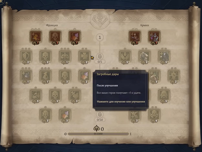 Фракции теперь имеют возможность принимать законы. Это можно сравнить с глобальным древом технологий из 4X-стратегий. Законы можно применить ко всей фракции в целом или конкретно к армии. Первыми можно повысить ежедневный доход в виде золота и ресурсов, приобрести некоторое количество алхимической пыли или повысить характеристики героев. У некромантов в эту ветку добавили и повышение эффективности некромантии для всех героев.