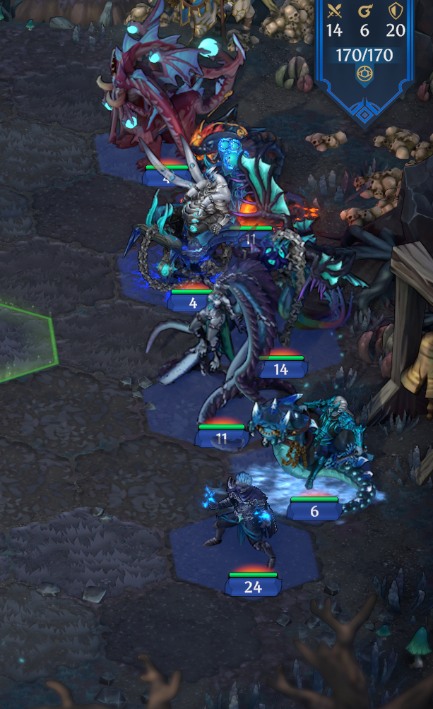 Альтгрейды отличаются друг от друга своими характеристиками и способностями. Например, один из улучшенных личей может стрелять по площади, а другой вместо этого обретает способность поднимать павшую нежить в бою. Соответственно, даже с четырьмя фракциями игрок потратит немало времени на изучение сильных и слабых сторон каждого улучшенного существа, синергий между различными существами одной фракции и т.д. Зачастую финальные версии армий могут довольно сильно отличаться друг от друга. Думаю, имея такую вариативность в плане армии, будет интересно играть на дуэльных зеркальных шаблонах, так как разные игроки могут предпочитать разные улучшения в своих войсках.
