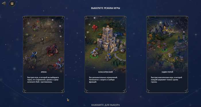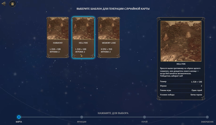 В этих двух режимах сейчас доступно по три шаблона. Среди них есть те, где спустя некоторое время после начала игры ваш герой и герой противника будут перенесены в отдельное место для финального сражения, те, где для победы надо захватить конкретный город противника, те, где надо победить буквально всех, и т.д. То есть условия победы разнятся от шаблона к шаблону.