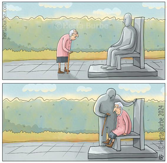 Комиксы Herta Burbe Скульптура Памятник Бабушка Вежливость Уступите место