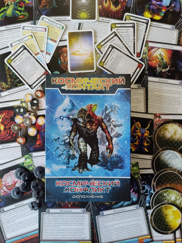 А ещё "Космический конфликт" содержит компоненты для дополнительного игрока, так что сразиться в эту замечательную игру теперь можно вшестером (или всемером, если у вас есть дополнение "Космическое вторжение").