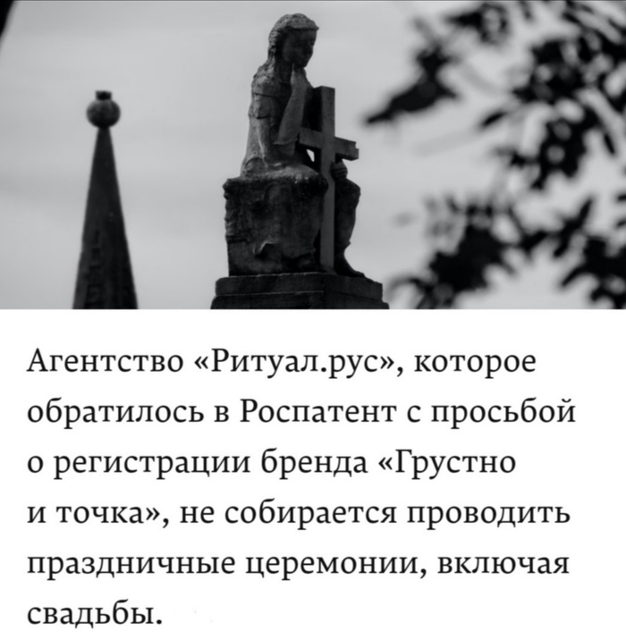 Новости о похоронной компании "Ритуал.рус", которая заявила о себе прошением зарегистрировать бренд "Грустно и точка".