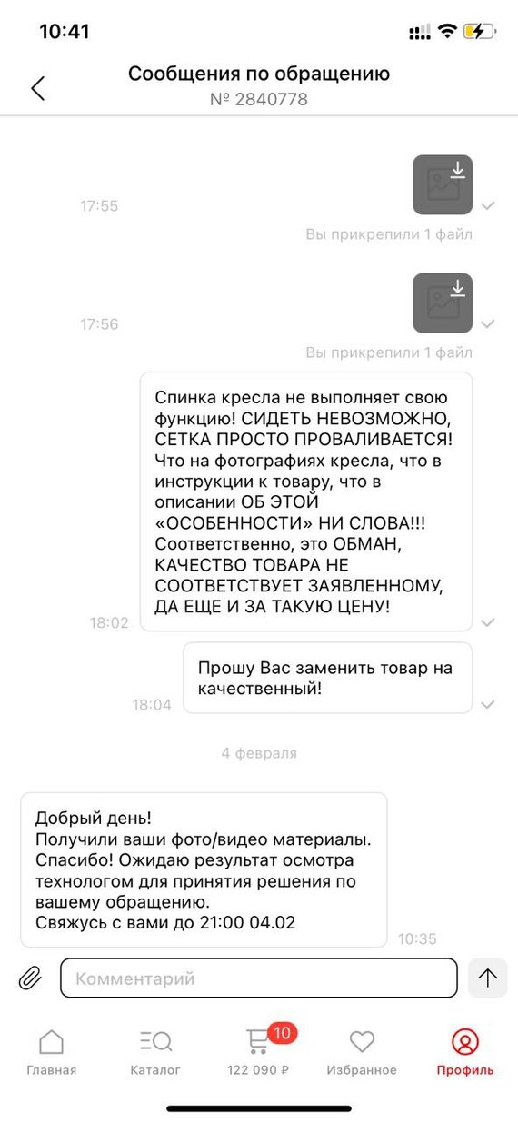 - Открываю новое обращение. Где меня пытаются тоже убедить, что это исключительно мои проблемы, что я читаю, что написано в смс с указанием даты и времени доставки и сборки. У них в программе все по другому, поэтому верно то, что у них во внутренней программе. Спросила как получить доступ к внутренней программе - не дали.