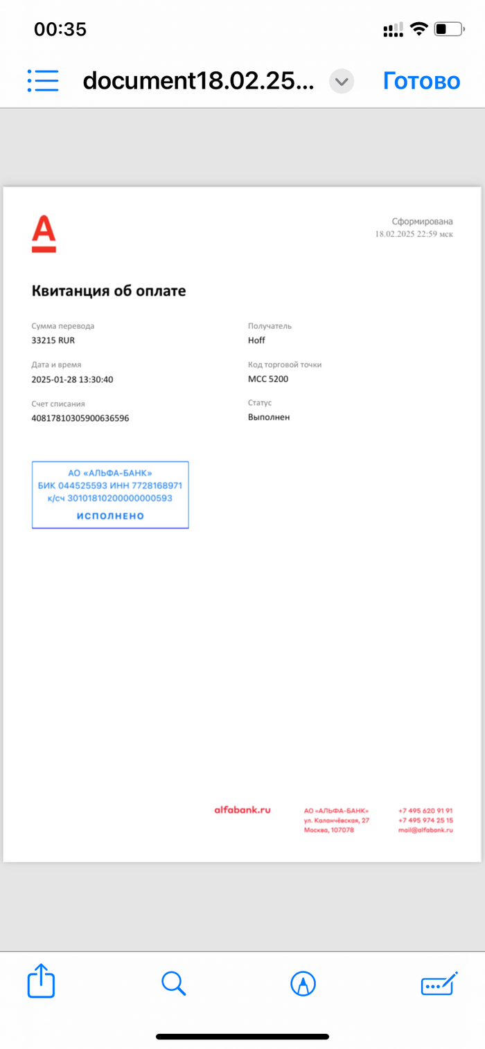 Купила 10 ноября в ХОФФ мебель на всю квартиру. Заказы 6041949767, 6041949946, 6041949995.