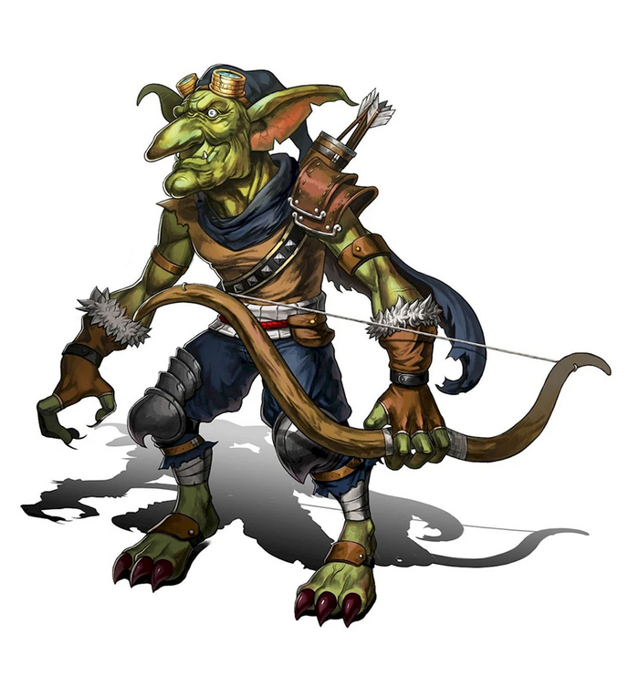 Если колдуньи взяли под своё крыло добрых существ из западноевропейского фольклора, то варварам достались злые существа оттуда же. Если копнуть совсем глубоко, то те же гоблины являются лишь разновидностью фейри, к которым можно отнести и пикси с эльфами и гномами. Слово “гоблин” происходит от старонормандского gobelin, которое восходит к латинскому gobelinus от древнегреческого κόβαλος — «плут», «бес». От того же корня происходит и “кобольд”. Внешность гоблинов описывается по-разному, но достоверно одно, гоблины — одни из самых уродливых созданий в европейской мифологии. Они антропоморфны, но рост варьируется от фута до двух метров. Впрочем, гоблины умеют превращаться в людей, но три элемента их внешности остаются неизменными: длинные уши, страшные, похожие на кошачьи, глаза, и длинные когти на руках. Уши гоблины прячут под шапку, когти — в перчатки, а вот глаза им никак не скрыть, поэтому, по преданию, узнать их можно по глазам.