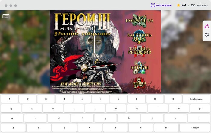 Как и в случае с нашими оригинальными браузерными Героями 3, для запуска используются оригинальные ресурсы игры для которых нужно указать путь. Ресурсы абсолютно такие же какие мы использовали для запуска ранее. В свободном доступе они располагаются на archive.org. Доступны русская и английская версии