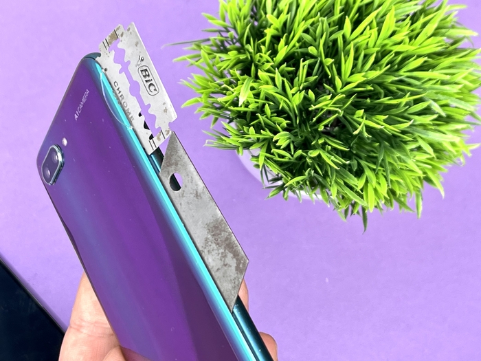 1️⃣ Берём один Honor 10 с разбитым дисплеем, нагреваем заднюю крышку и снимаем ее чем-то очень тонким и гибким