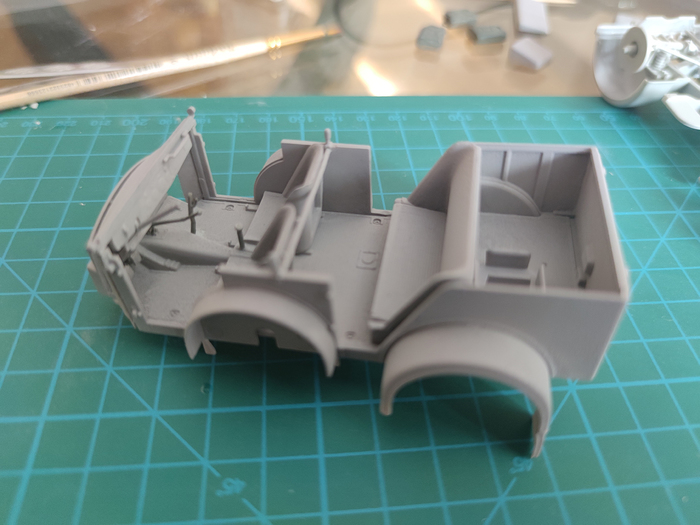 Это сразу после грунтовки. Тут еще живы ручки на коробке и эти маленькие антеннки возле передних кресел.