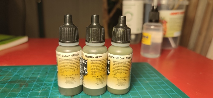 В процессе ломания и теряния деталей начала приходить мысль - не пора ли успокоиться и делать все то же, но вдумчиво и медленней. "Не вопрос" отвечает внутренний моделист, "давай пока отдохнем и накупим красок. Скоро ж красить." А надо сказать, что к этому времени я знаю такие слова, как Везеринг, Чиппинг, Смывка и еще парочку. Накуплено краски, фильтров, смывок, пигментов. Я доволен. В процессе выясняется, что 50 оттенков зеленого - это зря. Что баночка со словом "chipping" сама не делает сколы. А вальеховская линейка "гейм" - не очень подходит для окраски нацистской кожи, т.к. они начинают выглядеть, как поросята в форме.
