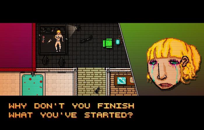 История Hotline Miami проведет вас через довольно странные вещи. Жуткие видения, альтернативные реальности и тревожные диалоги с визуальными эффектами - все это в порядке вещей. Пока разработчики направляют вашего персонажа через его собственную психопатию, вы чувствуете оцепенение от интенсивного насилия и кровопролития. Вы чувствуете себя отстраненным от убийств, вы настолько озабочены тактическим прохождением каждого участка, что подсознательно игнорируете, какую трагедию вы причинили окружающим. Большинство жестоких игр не сосредотачиваются на последствиях лишения жизни, но Hotline Miami обнажает причину отсутствия сочувствия. Вы когда-то отрывались от игрового процесса и задумывались о том, почему забрали столько жизней? Вы думали, а что если разработчики добавили бы реакцию родственников и друзей на смерти их близких? Вы будете думать об этом гораздо интенсивнее здесь. Большинство людей не задумываются об этом, потому что обычно это бессмысленно. Вы просто нажимаете на пиксели, чтобы добраться до конца этапа и посмотреть, что будет дальше. Но если вы никогда не задавались вопросом, как этот уровень насилия на самом деле будет разыгрываться в реальном мире, то Hotline Miami доставит вас самым плохим способом. По иронии судьбы именно потому, что предполагается, что вам все равно, что вы косите так много безликих противников с таким небольшим усилием мысли, через некоторое время вы начинаете замечать количество убитых. Было ли это намеренно или нет, но я уверен точно, что Dennaton Games намеревались создать игру, в которую они хотели бы играть сами. Это интенсивное насилие в сочетании с забавным дизайном игрового процесса - результат огромной фокусировки. Но зная страсть Джонатана Содерстрома к мелким деталям, преднамеренное создание такого сюжета более, чем возможно. Он взял Hotline Miami и нарисовал стрелу над тьмой, используя свою собственную механику. Для кого-то Hotline Miami - это комментарий к повествованию игр, большой жирный средний палец для тех, кто пытается навязать смысл каждой игровой механике, а не сосредоточиться на том, чтобы сделать эту механику забавной.