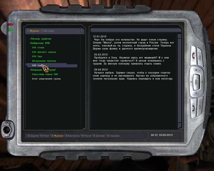 Шел по улице, появилась надпись "(F) Подобрать" и в инвентарь попал вот такой КПК. Подскажите, как в нем открыть карту и топ-20 сталкеров? :)