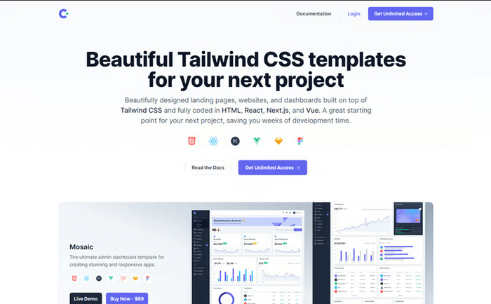 Cruip предлагает шаблоны на Tailwind, React, Vue, Next.js и Laravel.
