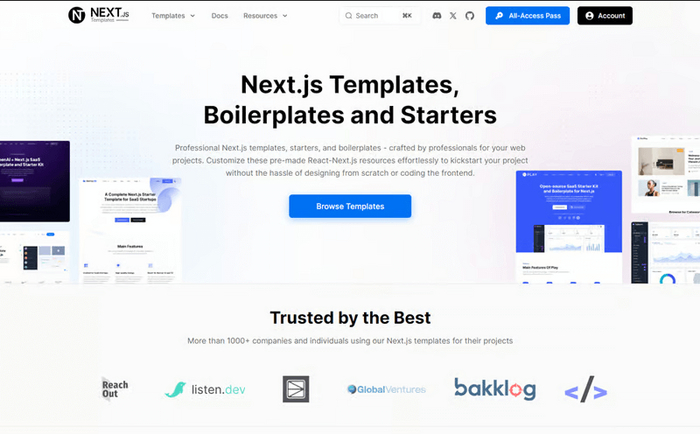 Nextjs Templates – широкий выбор шаблонов для разных целей, включая SaaS, стартапы, бизнес, программное обеспечение и блоги.
