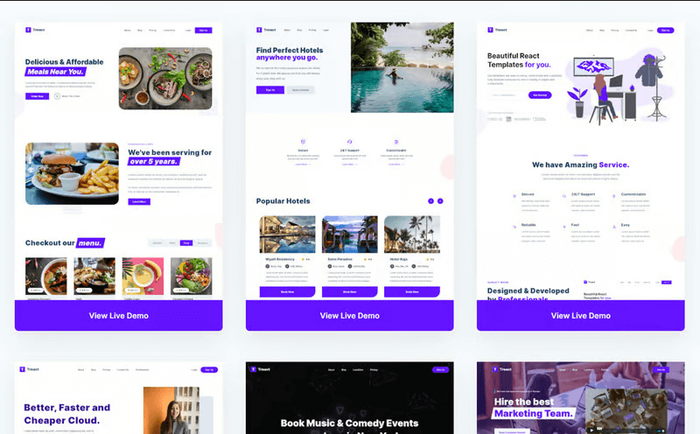 Treact – бесплатная библиотека React-шаблонов.
