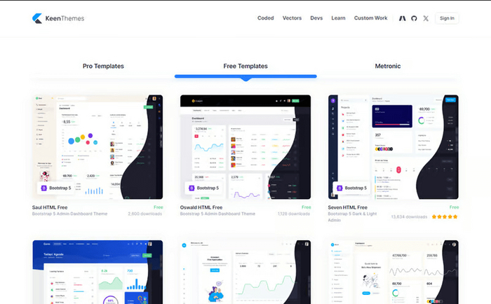 KeenThemes – современные шаблоны для админ-панелей со множеством компонентов.
