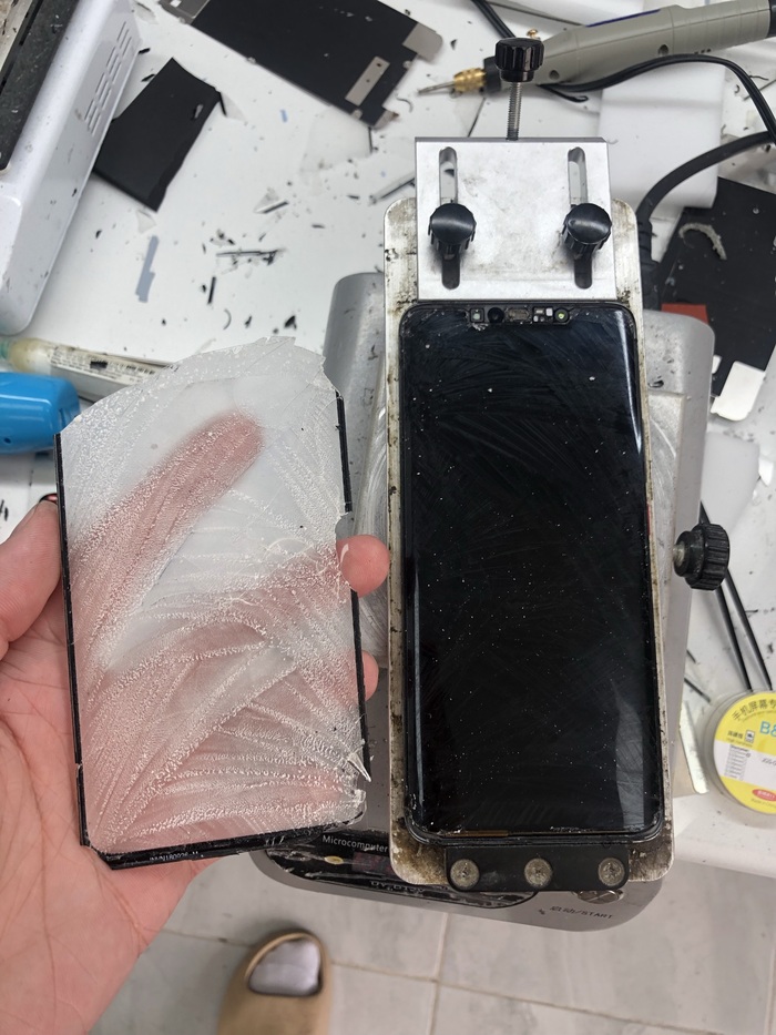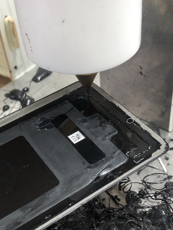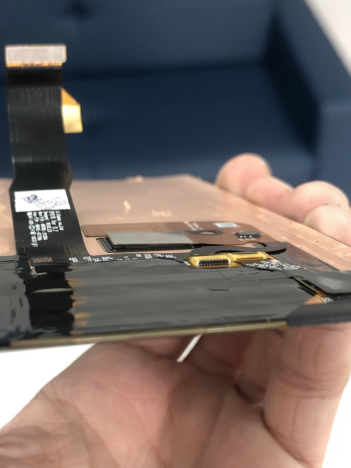 Прямо в экран вклеен ульразвуковой сканер отпечтка, нам его нужно будет снять, тк в прессе он нам помнет матрицу.