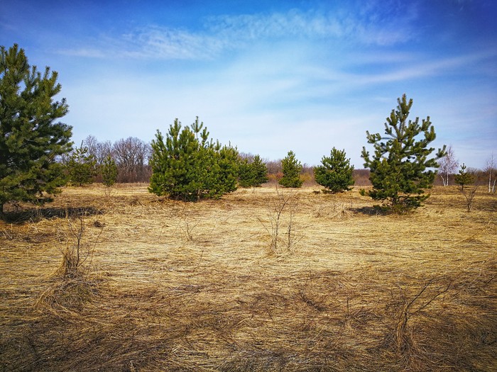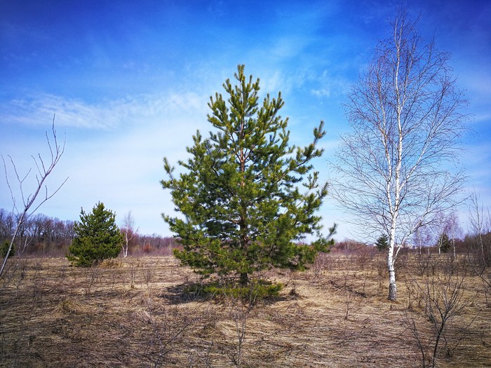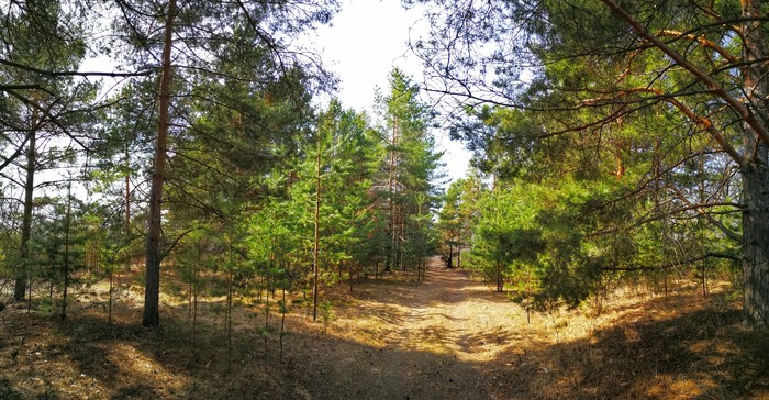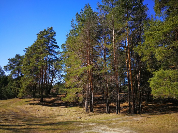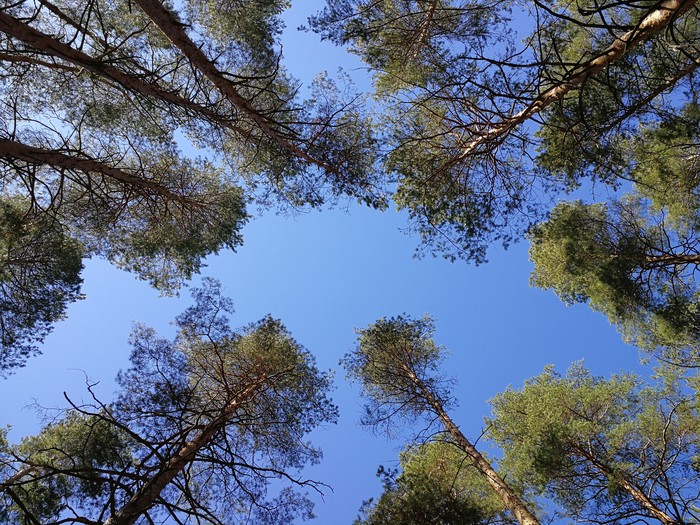 Высокие сосны и синее небо