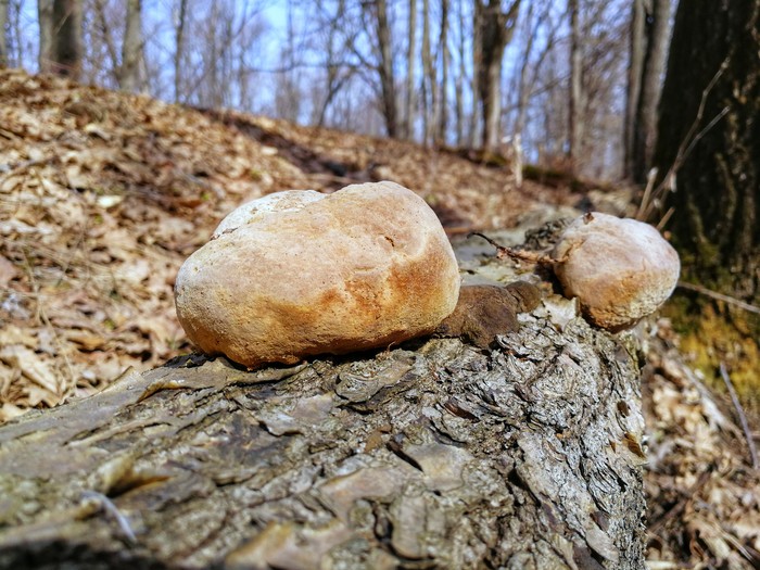 Грибы на упавшем дереве похожи на булочки)