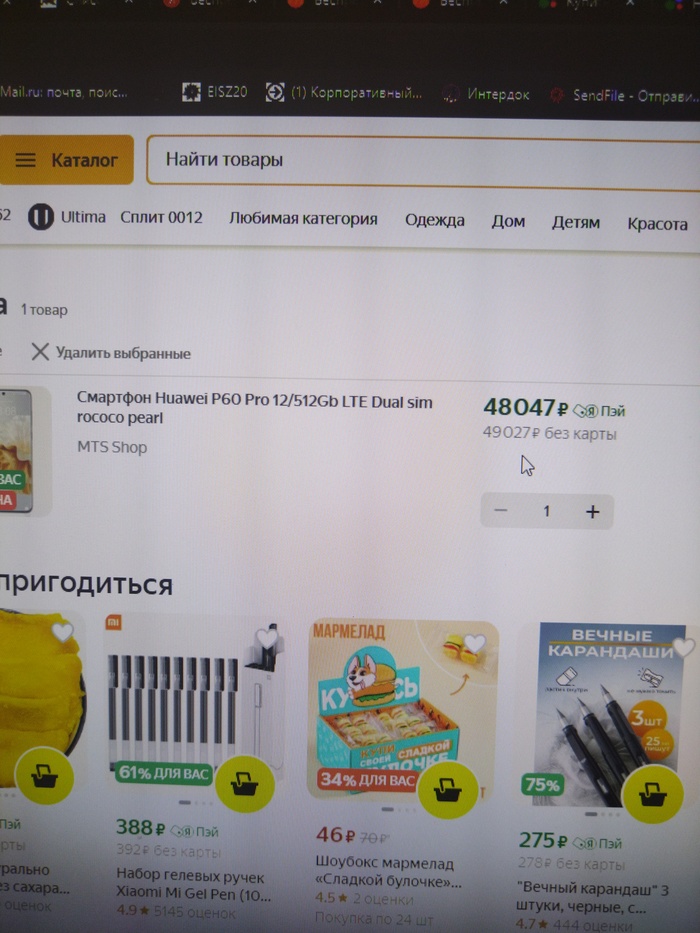 Захожу на Яндекс маркет с ПК и вижу отличный вариант за 49к (увы первое фото не сделал так что верьте на слово). Добавляю в корзину и пытаюсь оформить заказ с оплатой в пункте выдачи, но мне этого сделать не дает.