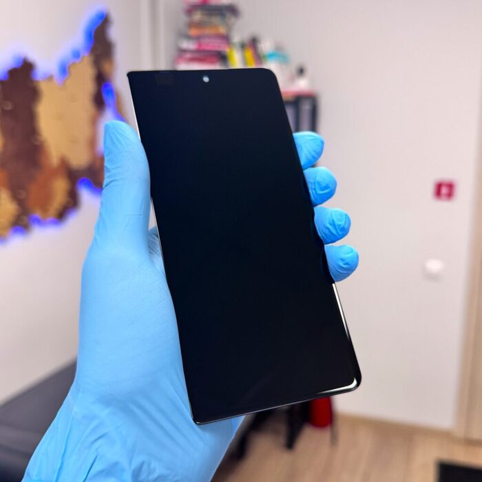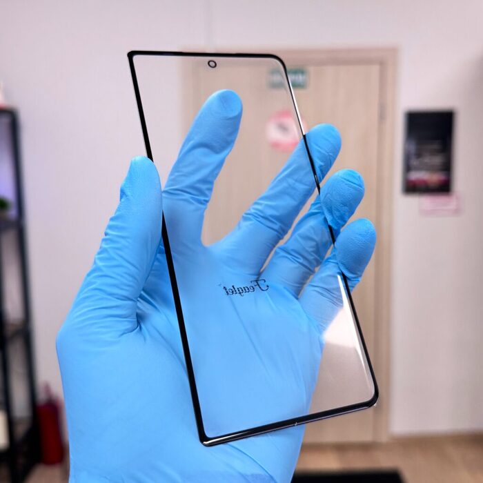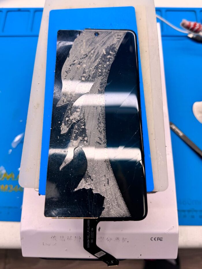 Внешний дисплей пойдёт под замену из за пятна, но стекло ради интереса всё-таки попробуем махнуть и посмотреть, насколько живучая матрица и разорвет ли её от срезки стекла или нет.