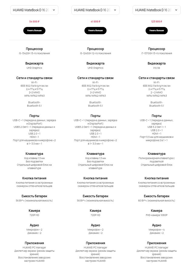23 апреля 2024 года через официальный интернет-магазин Huawei купил ноутбук «HUAWEI MateBook D16 2024 MCLG-X», с процессором i5-13420H, оперативной памятью 16 ГБ и SSD на 512 ГБ за 69 499 руб.