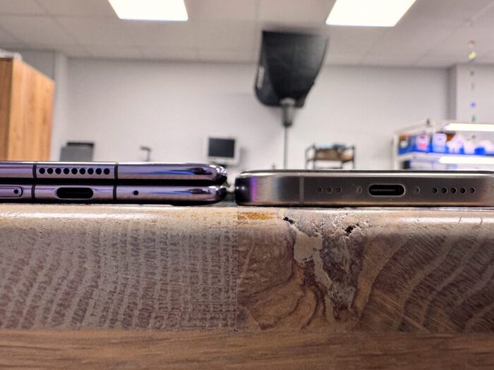 Кстати, для понимания, насколько он тонкий в сложенном состоянии, вот вам сравнение с iPhone 16 Pro.
