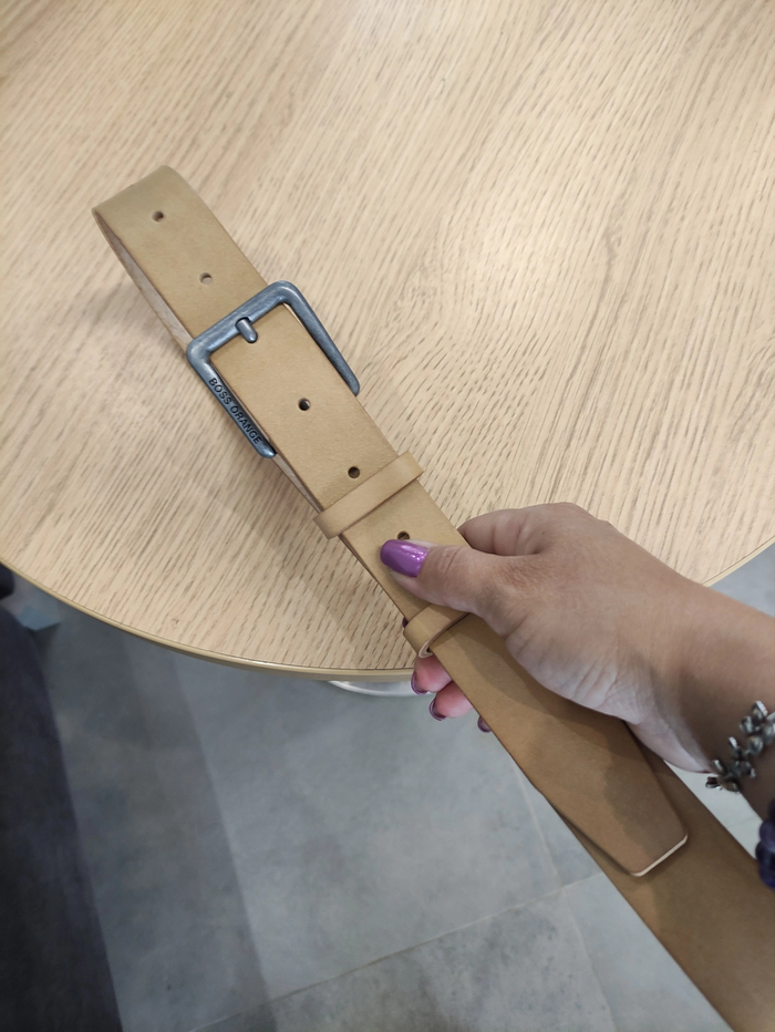 Нужен был светлый ремень, я рискнула предложить накрашенную итальянскую растишку, толстенькая, не жёсткая, со временем ещё должна потемнеть