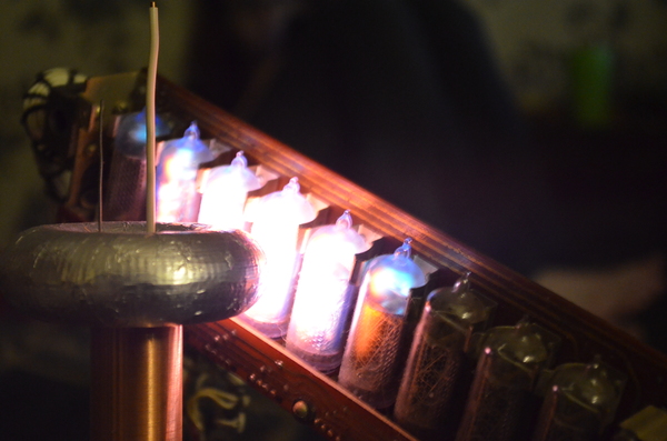 Но намного лучше и приятнее светятся газоразрядные индикаторы. Они светятся синим и оранжевым цветом, а внутри них куча тлеющих разрядов почти красного цвета.