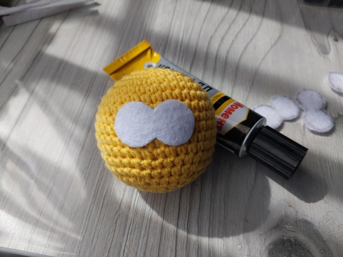 Готовые глазки клею на шарик с помощью момент кристалла. С глазами такой формы идет больше половины моих смайликов, поэтому таких заготовок с глазами я обычно тоже делаю сразу много)